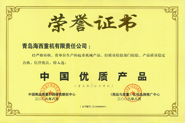 優(yōu)質(zhì)產(chǎn)品榮譽證書