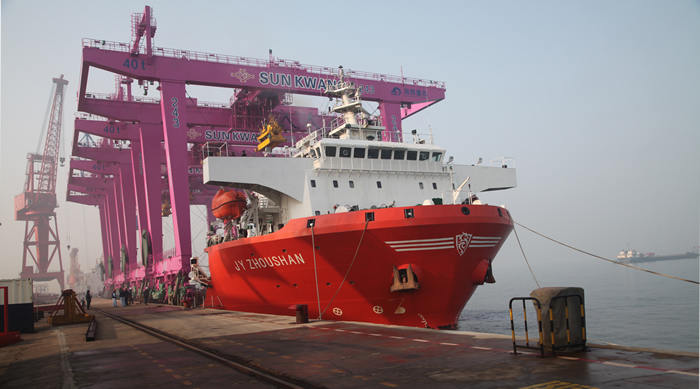 1月1日,青島海西重機為SNCT(韓國鮮光新港集裝箱碼頭有限公司)制造的8臺40噸自動化軌道吊第一批次(4臺)順利出海,成為2017年海西重機首批發(fā)運的港機設備。