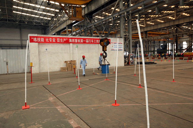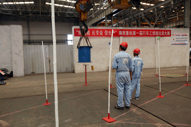 起重吊裝作業(yè)在公司諸多生產(chǎn)工藝環(huán)節(jié)當(dāng)中,是使用頻率較高、危險性較高的作業(yè)工序,安全、平穩(wěn)、準(zhǔn)確、快速地吊裝作業(yè)是高效生產(chǎn)的關(guān)鍵因素。行車占公司起重吊裝設(shè)備超過70%,因此行車工為我司的重點生產(chǎn)崗位之一,其技能水平的高低,在很大程度上影響著產(chǎn)品的生產(chǎn)節(jié)奏,甚至對公司整體上的生產(chǎn)節(jié)拍都會產(chǎn)生重大影響。公司一貫主張“不僅要有好的裝備,還要把裝備維護、保養(yǎng)好,更要把設(shè)備功用足用好”,在此背景下,為檢驗公司行車工的技能實力,提高行車工崗位意識和技能水平,促進行車工自主學(xué)習(xí)、苦練技能,進一步提升公司安全、高效的生產(chǎn)能力,由公司黨委主辦,工會承辦的行車工技能比武大賽應(yīng)運而生。