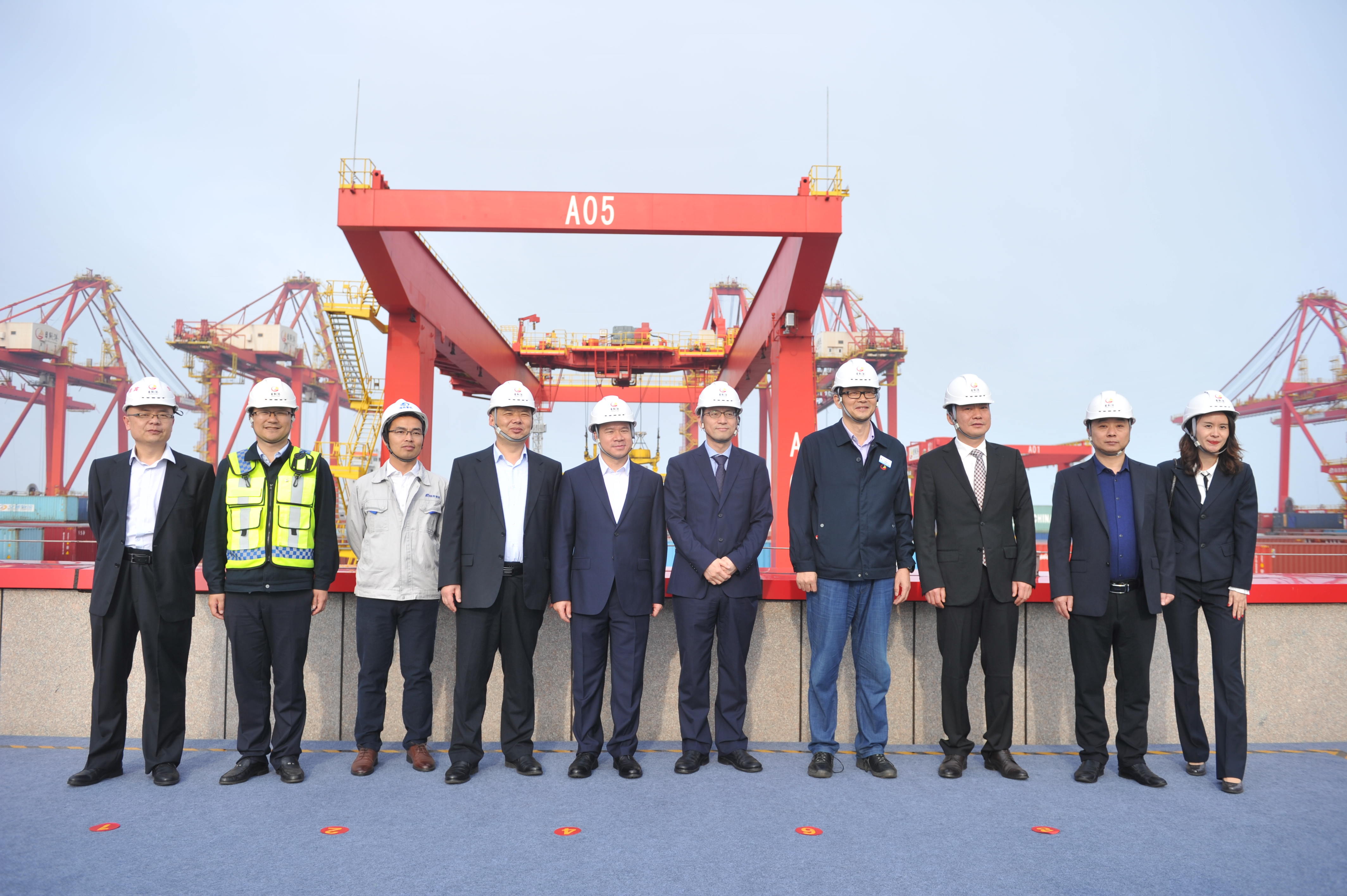 日照市科學技術(shù)局黨組書記、局長楊洪福,日照港集團公司副總經(jīng)理高健,青島海西重機有限責任公司黨委書記、董事長鄧振山,瑞典ABB港口業(yè)務部全球市場和業(yè)務發(fā)展經(jīng)理瑪麗特.妮斯特倫(Maarit Nystrom)出席并在集發(fā)公司自動化堆場遠控中心為竣工投產(chǎn)儀式共同按下啟動球。