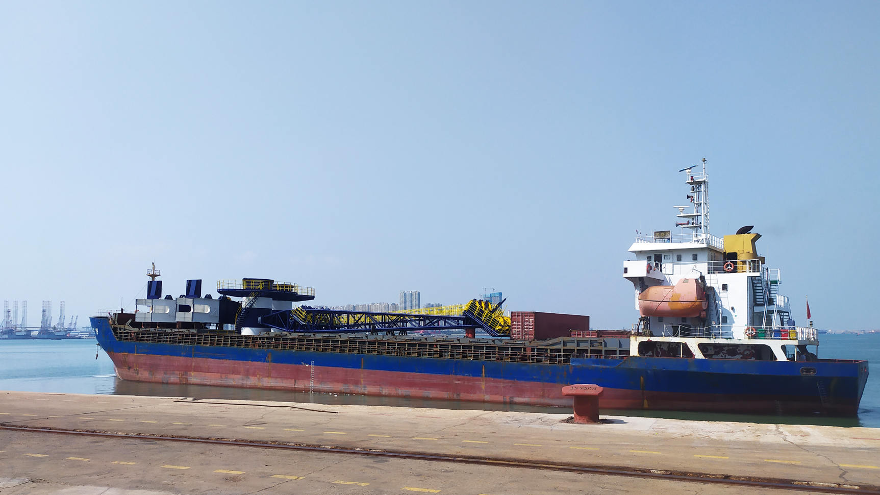 該批設(shè)備最大起重量50t,最大起升高度26米,工作幅度30米,是幾內(nèi)亞博法港目前起重量最大的固定吊,是幾內(nèi)亞鋁土礦項(xiàng)目碼頭裝卸設(shè)備的重要補(bǔ)充。