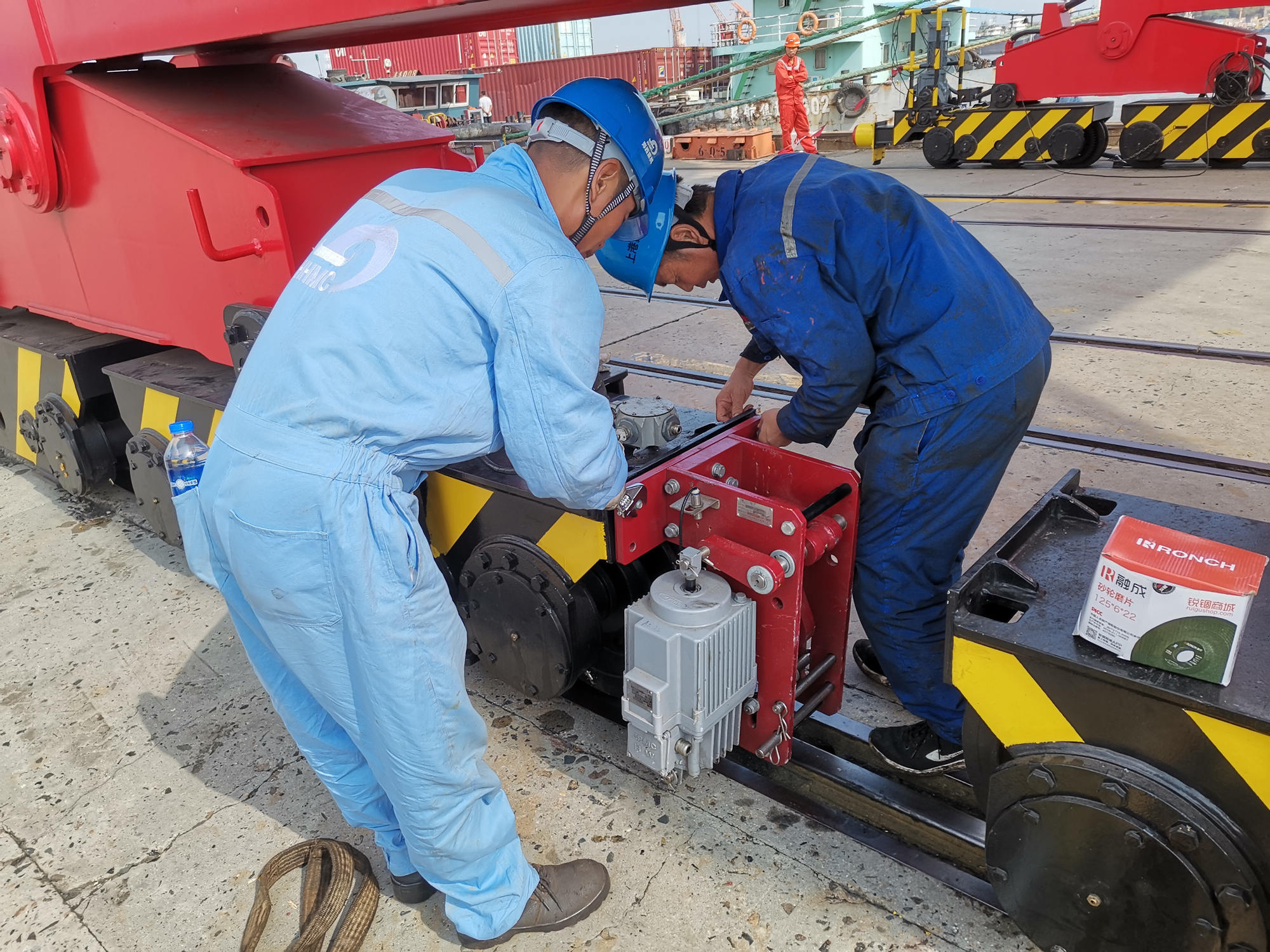 國慶假日恰逢米娜臺風光顧,為了能按時順利交機,調(diào)試人員、安裝人員提前策劃國慶期間工作安排,人機料法環(huán),既要保進度、重質(zhì)量,又要考慮施工天氣和安全 ,經(jīng)過緊密組織策劃,防臺防汛結(jié)束后馬上開始追趕調(diào)試進度,中午連班,晚上加點,10月4日順利完成特檢,10月6日吊具功能調(diào)試順利完成并交付業(yè)主試運行。