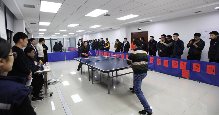 比賽分上下半?yún)^(qū)循環(huán)賽,每隊(duì)采取三局兩勝制,分為男子單打、女子單打、男女混雙、男雙、男單五組進(jìn)行團(tuán)體比賽,每組比賽采取三局兩勝十一分制。乒乓球作為我國(guó)國(guó)球,有著無可比擬的群眾基礎(chǔ),無論男女老少皆可上臺(tái)“搓幾下”。此次比賽得到了廣大員工的關(guān)注,大家紛紛到場(chǎng)為自己支持的代表隊(duì)吶喊助威。