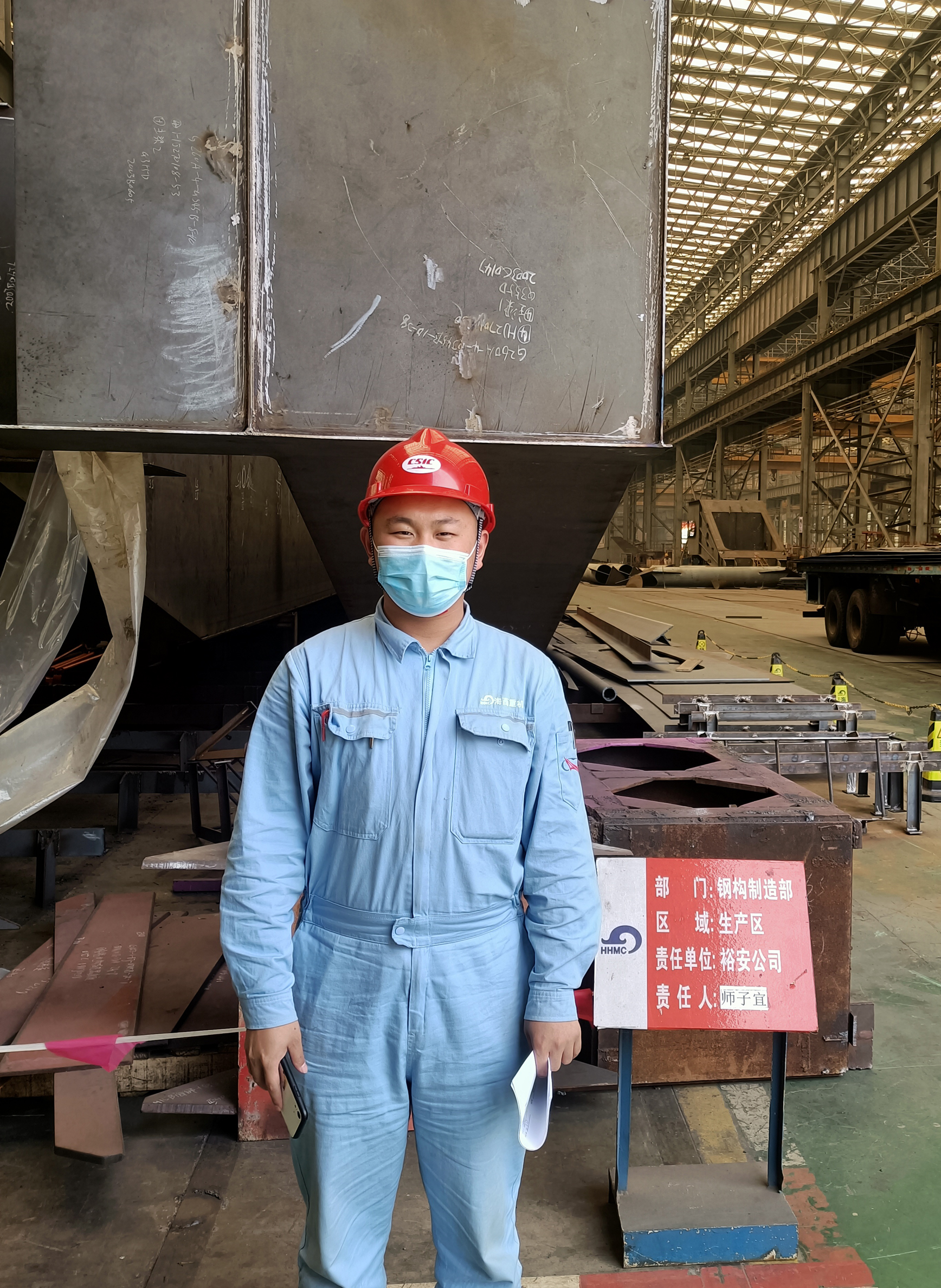 平靜沉默不代表木訥。尹海斐是一個(gè)讓人容易誤解的優(yōu)秀計(jì)調(diào)員,雖然總感覺沉默不語,但絕對時(shí)刻保持頭腦清醒,不被他人和情緒左右。他擅于從紛繁雜亂的工作情景中,平靜快速的梳理出清晰的頭緒和脈絡(luò),他的第一個(gè)挑戰(zhàn)是K12-05前大梁轉(zhuǎn)運(yùn)吊裝的組織安排工作。接到命令后,第一時(shí)間聯(lián)系工藝落實(shí)技術(shù)方案,組織協(xié)理公司做前期準(zhǔn)備,過程不順利,現(xiàn)場組織嘗試多種辦法無果,轉(zhuǎn)運(yùn)失敗后,他沒有任何抱怨,立刻協(xié)調(diào)相關(guān)人員在港機(jī)所討論并確定具體可行方案,再返回現(xiàn)場組織實(shí)施并全程跟蹤,等到微信群內(nèi)匯報(bào)工作時(shí),只是簡單的一張照片加幾個(gè)字“12-05前大梁,已出”,時(shí)間是晚上10點(diǎn)半。部門周三核對節(jié)點(diǎn)時(shí),他總是平靜從容,對每個(gè)節(jié)點(diǎn)涉及的人員設(shè)備安排、物料情況、工藝方案都了然于心,跨工序的協(xié)助欄桿清點(diǎn)物料,落實(shí)安裝條件,真正的做到向前跨一步,向后看一步,是一個(gè)很有計(jì)劃性、很有執(zhí)行力的計(jì)調(diào)員!