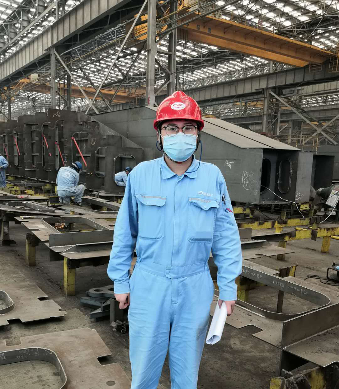 踏實(shí)的腳步不代表畏葸不前。他是一個(gè)憨厚可信的同事,總能讓你感覺他在時(shí)刻進(jìn)步。G259支腿結(jié)構(gòu)件的翻身工作,從開始的吊裝方案探討、吊車計(jì)劃的安排、工作分配、人員準(zhǔn)備、吊索具狀態(tài)確認(rèn),這些可能干擾正常項(xiàng)目進(jìn)度的前期準(zhǔn)備工作中,總能看見他拿著本子在記錄著什么。吊裝時(shí)吊車的位置與兩臺(tái)吊車之間的操作配合產(chǎn)生的一點(diǎn)不協(xié)調(diào),他也要與現(xiàn)場施工人員商議確認(rèn),雖然耽誤了十幾分鐘,但安全地完成工作任務(wù);報(bào)檢過程需要懂得經(jīng)緯儀操作,他便幾個(gè)中午纏著帶班班長,一板一眼的學(xué)習(xí),現(xiàn)在的他儼然是一個(gè)“激光”老手,令人欽佩。