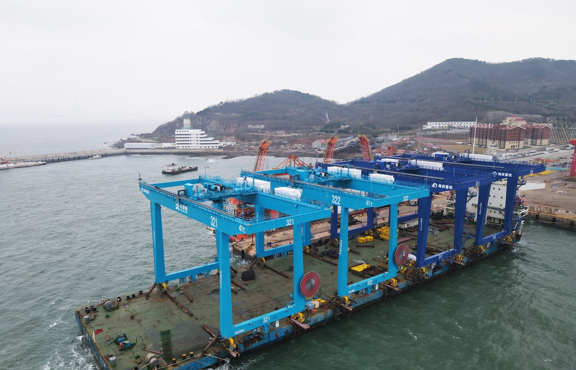 11月19日,裝載著天津港北疆港區(qū)C段智能化集裝箱碼頭一期工程項目第一批4臺藍(lán)色自動化軌道吊的運輸船“泛洲6”順利從中國船舶集團(tuán)旗下武漢船機海西重機公司碼頭起航,發(fā)往天津港。