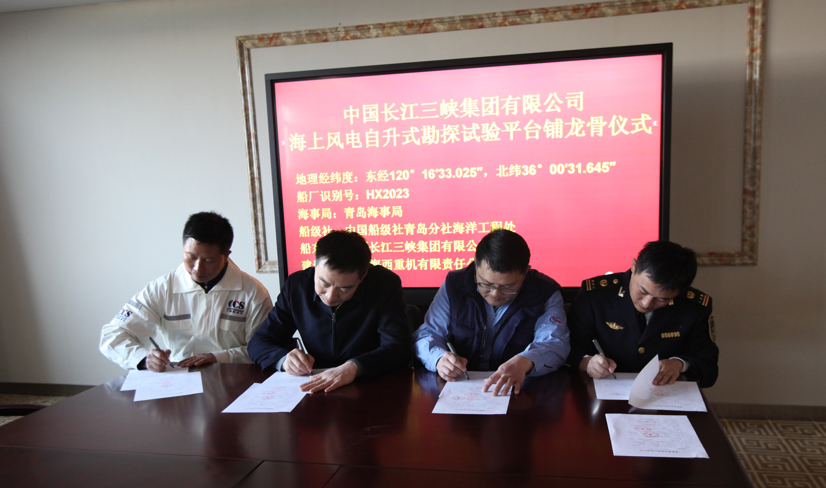 12月22日上午,在青島海事局、中國(guó)船級(jí)社青島分社、中國(guó)長(zhǎng)江三峽集團(tuán)有限公司、中國(guó)船舶集團(tuán)旗下武漢船機(jī)海西重機(jī)各方代表共同見證下,“中國(guó)三峽101”海上風(fēng)電自升式勘探試驗(yàn)平臺(tái)順利完成鋪龍骨儀式,標(biāo)志著該項(xiàng)目正式進(jìn)入平臺(tái)搭載建造階段。