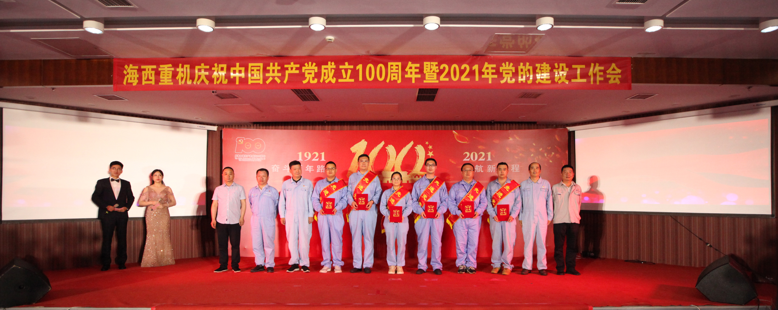 精彩紛呈的節(jié)目令在場觀眾意猶未盡。匯演告一段落后,公司黨委副書記、總經(jīng)理張懷志宣讀公司黨委關(guān)于表彰2020-2021年度“一先兩優(yōu)”和“質(zhì)量先進(jìn)”的決定,公司領(lǐng)導(dǎo)為先進(jìn)黨支部、質(zhì)量先進(jìn)班組、質(zhì)量標(biāo)兵、模范黨員頒獎并合影留念。會上簽訂了“準(zhǔn)時發(fā)運”目標(biāo)責(zé)任書。黨旗飄揚在生產(chǎn)一線,黨徽閃耀在崗位上,先進(jìn)模范們沖鋒在攻堅克難的最前線,是海西人學(xué)習(xí)的榜樣。