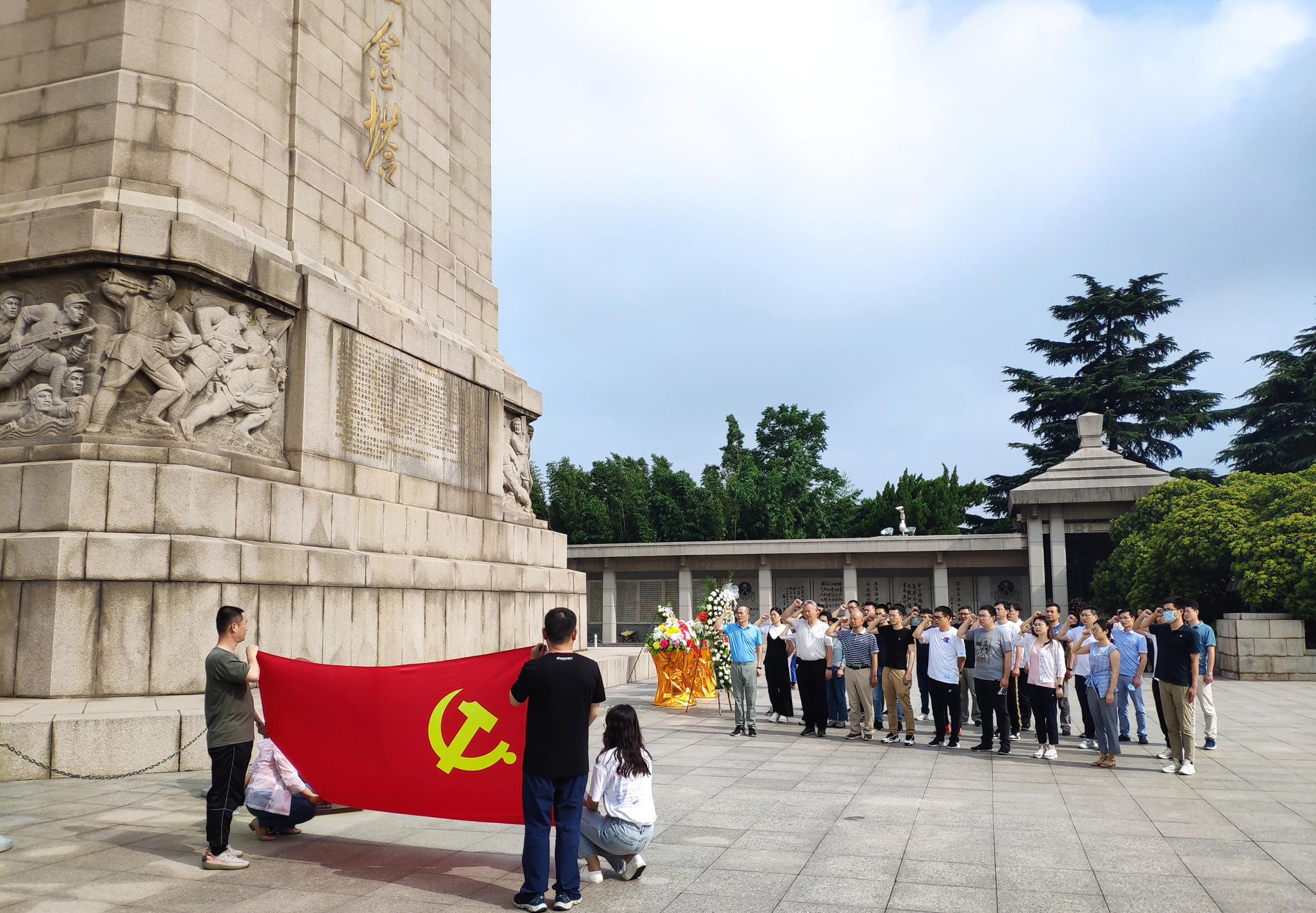 不忘歷史,砥礪前行。在淮海戰(zhàn)役紀念塔前,黨員們整齊列隊,肅立默哀,公司優(yōu)秀黨員代表敬獻花籃,深切悼念為中國革命事業(yè)前仆后繼、英勇獻身的革命先烈,緬懷他們的革命精神和不朽功績。隨后,全體黨員面對莊嚴巍峨的紀念碑重溫入黨誓詞,在神圣莊嚴的儀式感召中,堅定如磐初心,踐行使命擔當。