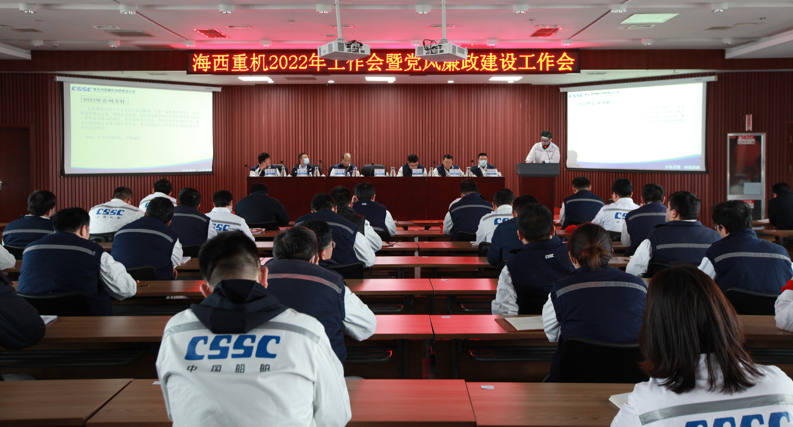 2月12日,中國船舶集團旗下武漢船機海西重機公司在901會議室召開2022年工作會暨黨風廉政建設工作會,觀看《凝心聚力謀發(fā)展 砥礪奮進譜新篇》公司2021年度匯報片,學習傳達武漢總部2022年工作會、黨風廉政建設工作會會議精神,總結(jié)公司2021年取得的成績,分析經(jīng)濟形勢,進一步明確2022年工作思路,并就各方面重點工作作出部署。