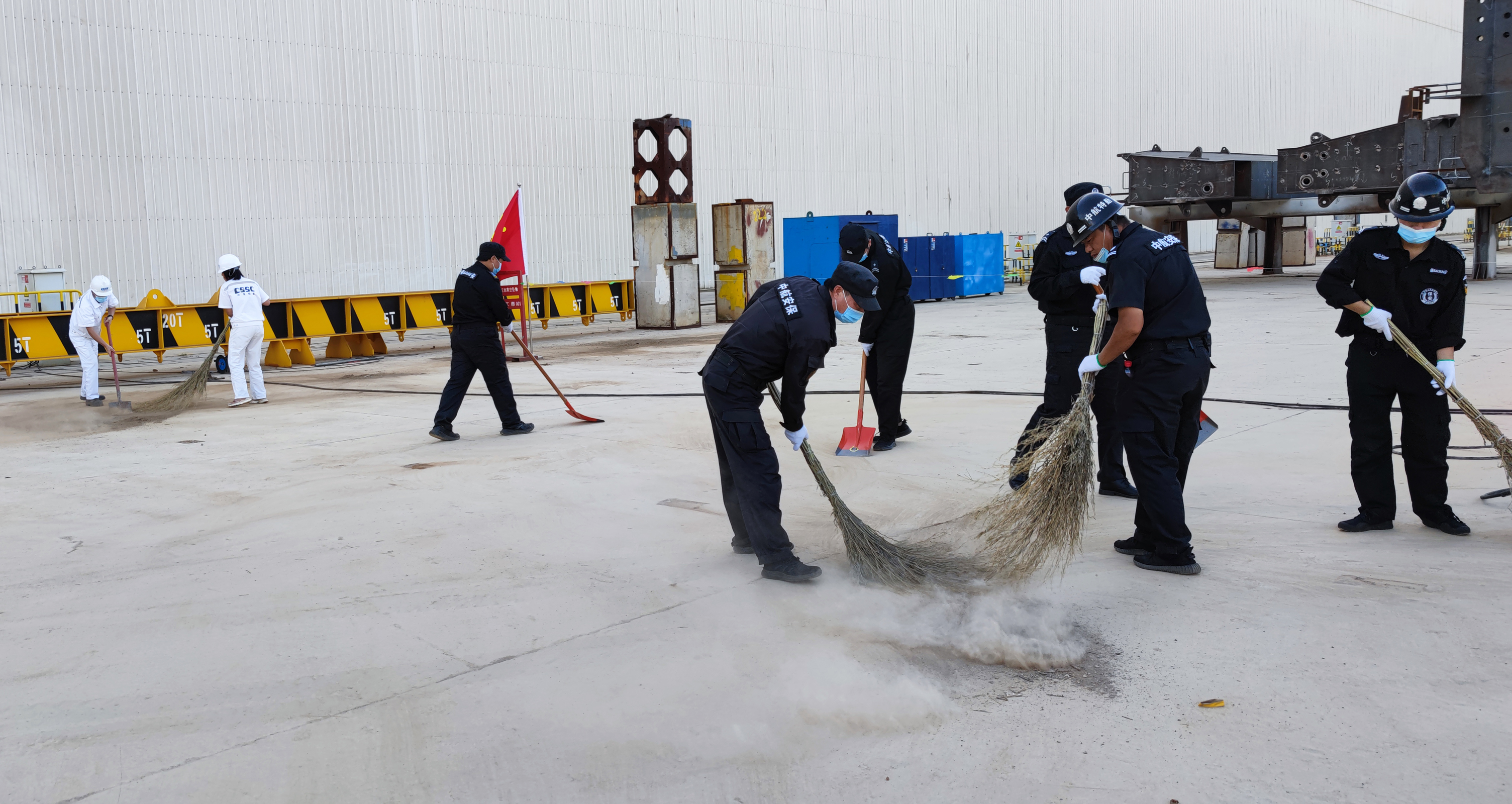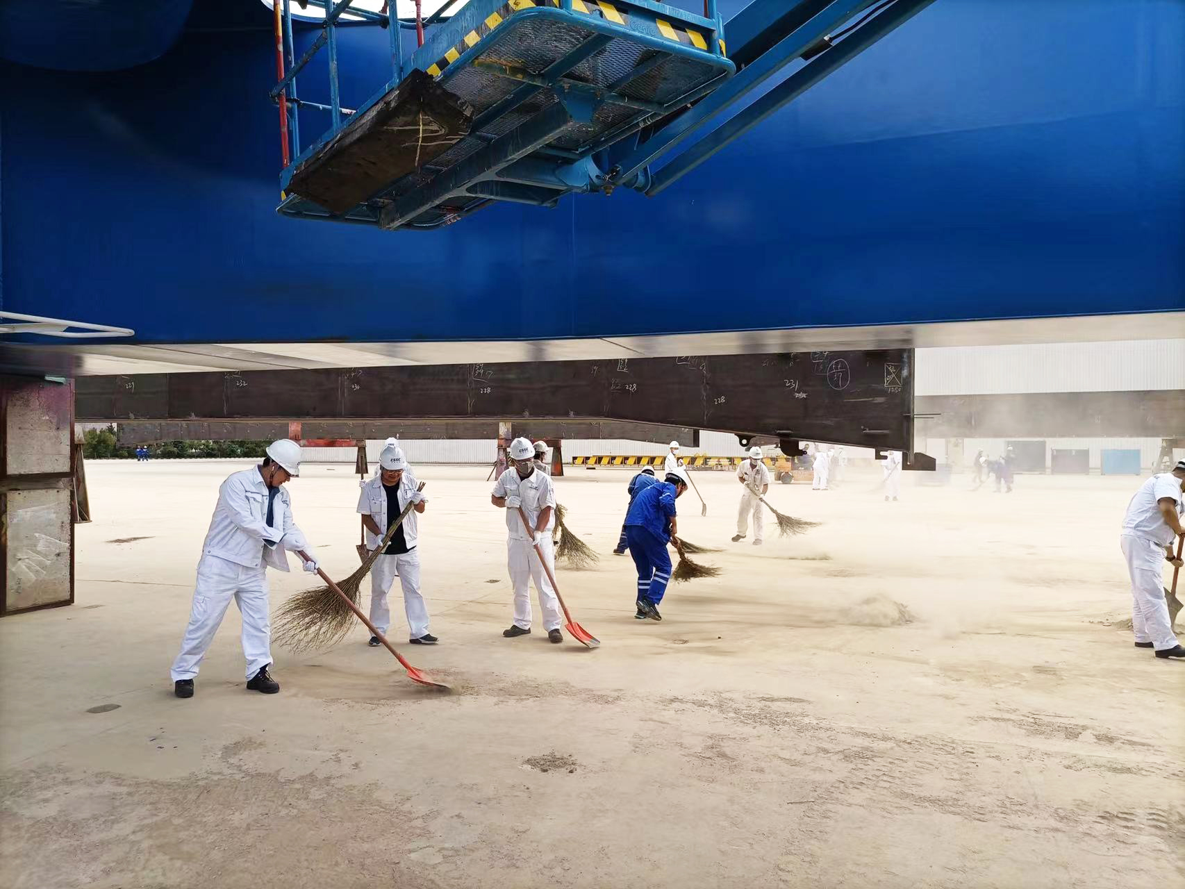 各黨支部根據(jù)劃分好的勞動(dòng)區(qū)域精心策劃,對(duì)支部參與人員進(jìn)行分組,細(xì)化任務(wù)分工,提前領(lǐng)用清潔工具,為活動(dòng)開(kāi)展做足準(zhǔn)備。每天下午四點(diǎn),相應(yīng)的黨支部根據(jù)分工安排,帶好清潔工具,分組奔赴新拼裝場(chǎng)地區(qū)域。大家熱情似火,干勁十足。每個(gè)參與者不怕苦不怕累,不怕塵土迷了眼睛,用掃帚掃、用鐵鍬鏟,齊心協(xié)力,爭(zhēng)做先鋒。汗水濕透了每個(gè)人的衣襟,熱火朝天的勞動(dòng)場(chǎng)面感染著在場(chǎng)每一個(gè)人,工作服蒙上了一層塵土,每個(gè)人的臉上卻洋溢著笑容,帶走了泥土,留下了熠熠生輝的奉獻(xiàn)精神。