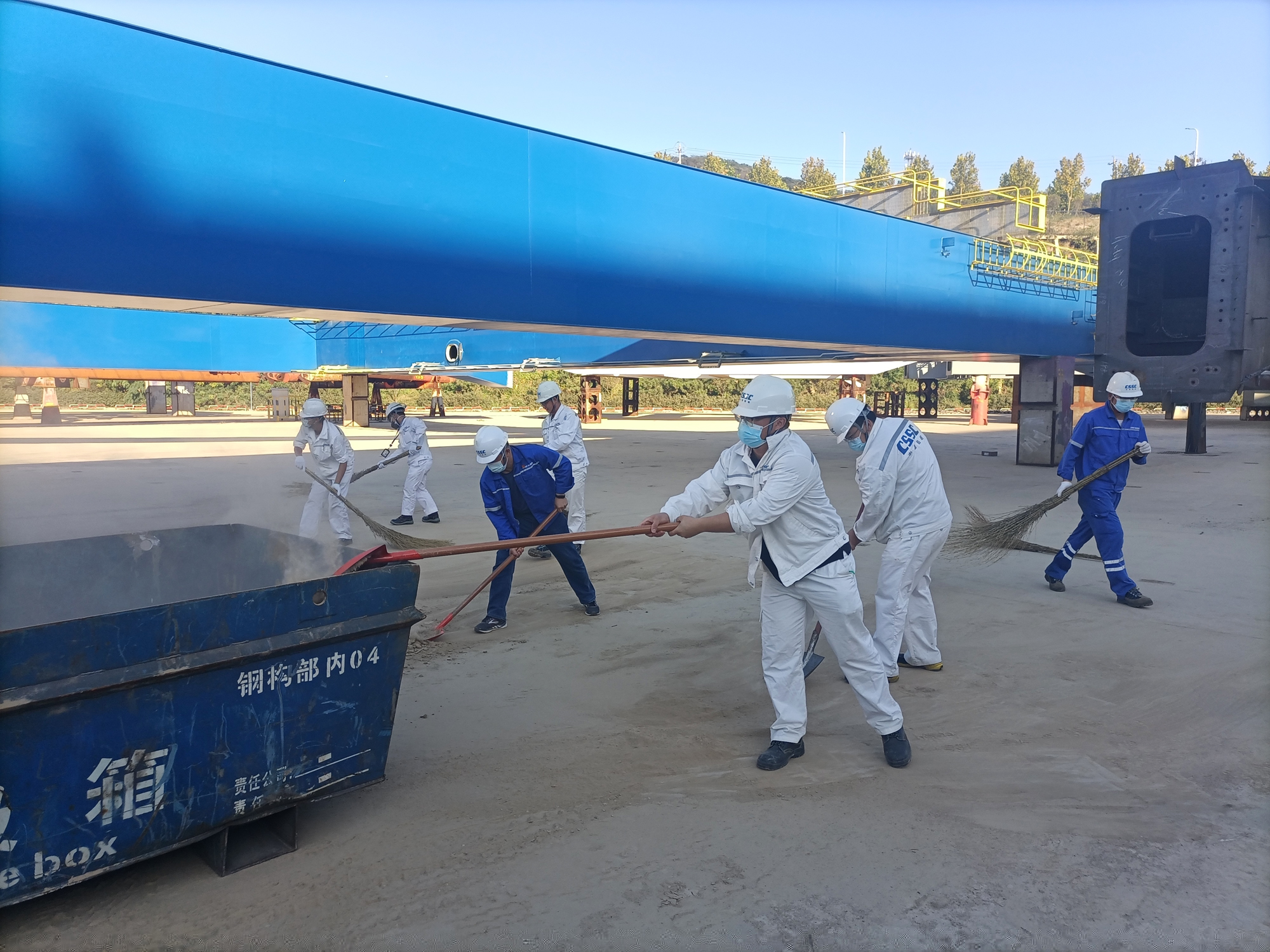 近期臺(tái)風(fēng)過(guò)境,暴雨天氣帶來(lái)了秋季的涼意,卻也給廠區(qū)生產(chǎn)帶來(lái)了不便。新拼裝場(chǎng)地區(qū)域雨水褪去后留下一層厚厚的泥土,影響了該區(qū)域的生產(chǎn)活動(dòng)。值此國(guó)慶節(jié)來(lái)臨之際,為建設(shè)美麗廠區(qū),喜迎“國(guó)慶”,充分發(fā)揮黨員先鋒模范作用以及入黨積極分子、青年團(tuán)員和骨干的主觀能動(dòng)性,中國(guó)船舶旗下武漢船機(jī)海西重機(jī)公司黨委于9月20日-9月29日組織開(kāi)展迎國(guó)慶主題義務(wù)勞動(dòng)活動(dòng),清理新拼裝場(chǎng)地泥土。