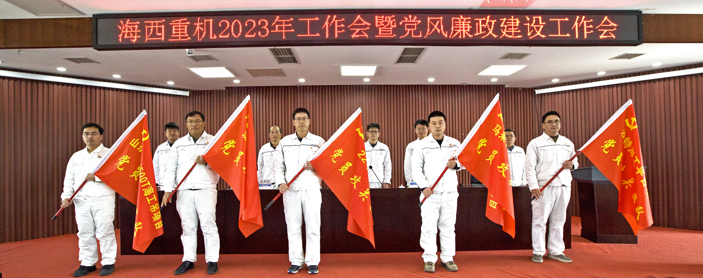 為將黨建工作優(yōu)勢轉(zhuǎn)化生產(chǎn)經(jīng)營工作優(yōu)勢,充分釋放黨建工作“紅利”,進(jìn)一步推動黨建工作與生產(chǎn)經(jīng)營工作深度融合,針對2023年生產(chǎn)任務(wù)繁忙,會上還針對山東海洋1500T風(fēng)電安裝平臺1500t起重機(jī)項(xiàng)目、深圳大鏟灣項(xiàng)目、550T門機(jī)項(xiàng)目、馬來西亞古晉港2臺岸橋、沙特海工輔助生活平臺等5個重難點(diǎn)項(xiàng)目成立黨員攻關(guān)團(tuán)隊(duì),并開展授旗儀式,確保各項(xiàng)任務(wù)保質(zhì)按期完成。