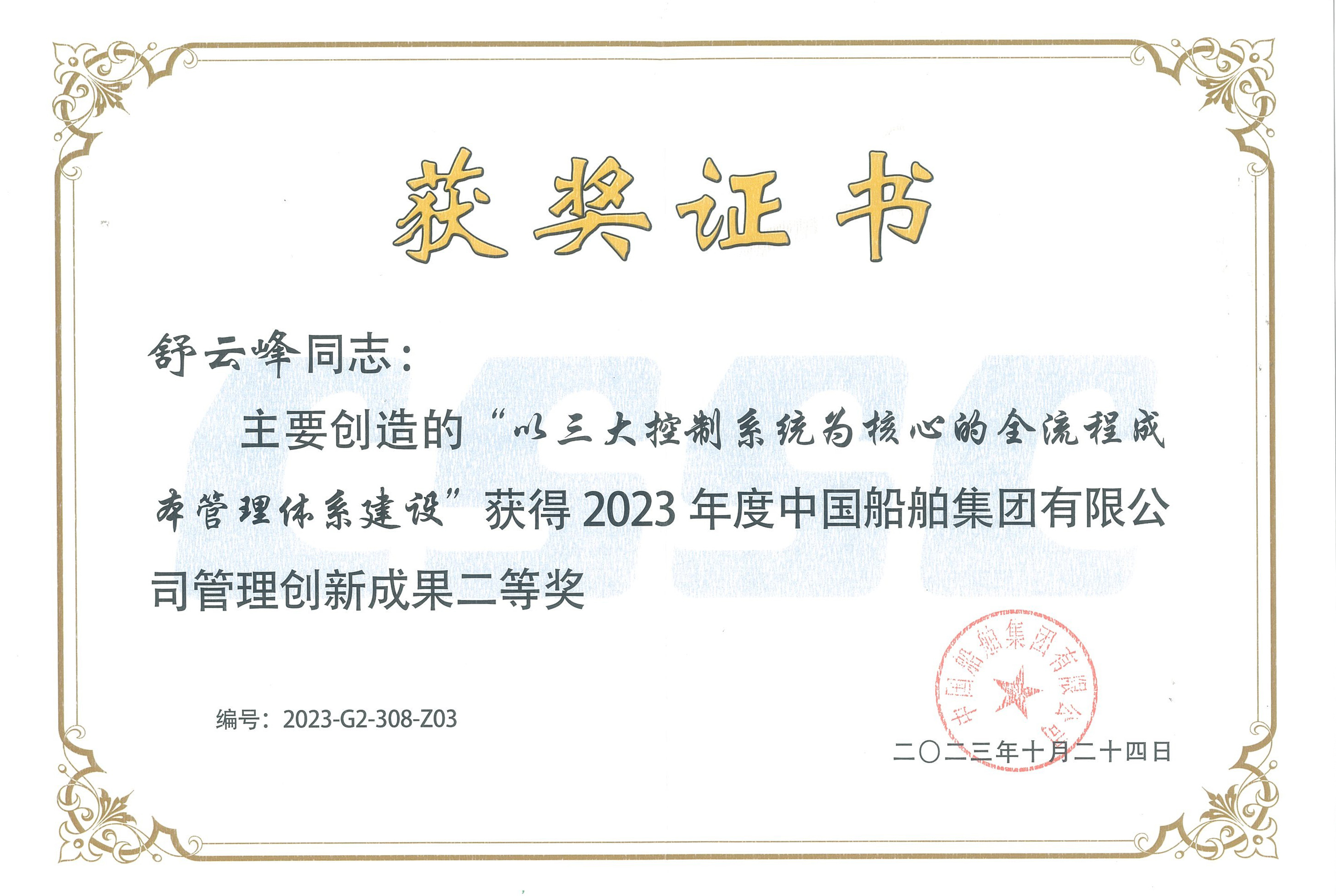 近日,集團(tuán)公司傳來(lái)喜訊,海西重機(jī)“以三大控制系統(tǒng)為核心的全流程成本管理體系建設(shè)”管理創(chuàng)新成果榮獲中國(guó)船舶集團(tuán)2023年度管理創(chuàng)新成果二等獎(jiǎng)。