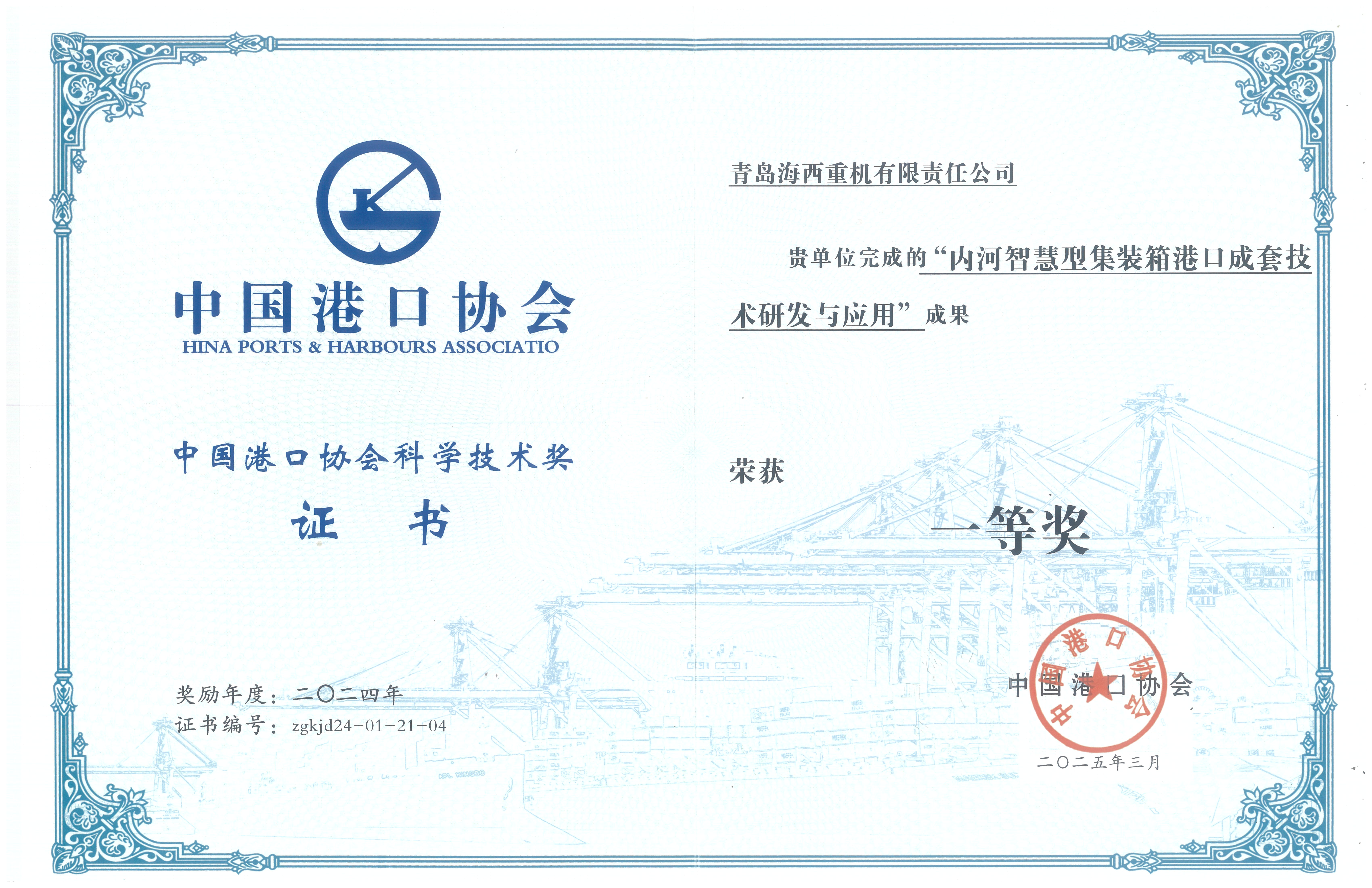 近日,由海西重機深度參與并共同申報的技術(shù)成果——龍拱港《內(nèi)河智慧型集裝箱港口成套技術(shù)研發(fā)與應(yīng)用》項目榮獲科技部和國家獎勵辦公室共同批準(zhǔn)設(shè)立的2024年度“中國港口協(xié)會科學(xué)技術(shù)獎”科技進(jìn)步一等獎。項目實施方龍拱港成為了江北內(nèi)河首個獲得中國港口協(xié)會科學(xué)技術(shù)一等獎的港口,這一突破標(biāo)志著海西重機在智慧港口領(lǐng)域的技術(shù)創(chuàng)新與系統(tǒng)集成能力再獲國家認(rèn)可。