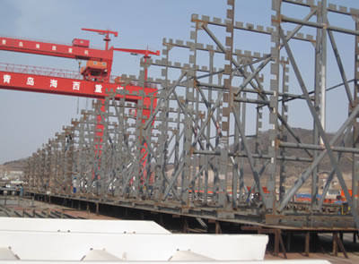 天津新港600T造船龍門吊是青島海西重機有限責任公司承接的第一臺大型龍門起重機,合同總額1.05億元,是公司關鍵項目。公司領導高度重視,專門成立了以公司總經理為組長的項目組,在全公司實施精品戰(zhàn)略,本著“作一臺設備,占一片市場,交一個朋友”的宗旨,從聯(lián)合設計到注重制造的每一個細節(jié),海西重機都組織了多次討論,全力保證產品質量。