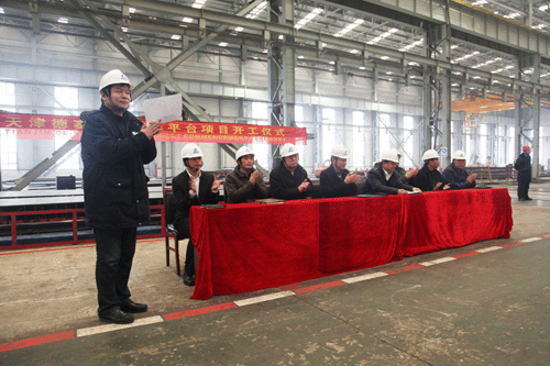 在開工點(diǎn)火儀式上,船東德賽公司和美國ABS船級社都充分肯定了公司在開工前的準(zhǔn)備工作,對公司的施工組織設(shè)計(jì)、項(xiàng)目人員配備、焊接工藝評定等等工作都非常滿意。公司副總孫國慶在點(diǎn)火儀式上承諾:在船東代表的指導(dǎo)下,在美國ABS船級社的監(jiān)造下,公司一定秉承“你(德賽公司)給我機(jī)會,我給你喜悅”,建造一個(gè)一流的海工平臺交付船東,讓大家都喜悅!